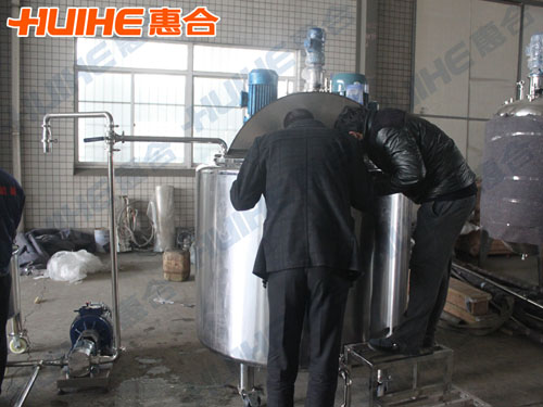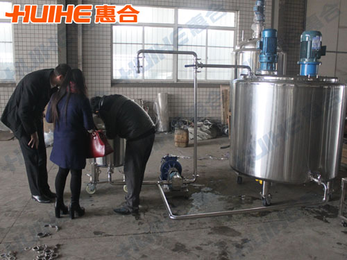 英國客戶需要加工類似蜂蜜的糖漿,欲采購不銹鋼容器用于其產品的加工。經過與業(yè)務員的多次溝通協(xié)商,客戶于2014年11月底在我公司訂購1000L和100L各一臺乳化罐。歷時1個多月,設備終于順利完工。2015年1月9日,英國客戶來工廠驗貨,業(yè)務員和技術工程師對乳化罐作了詳細的講解,客戶對設備較為滿意。