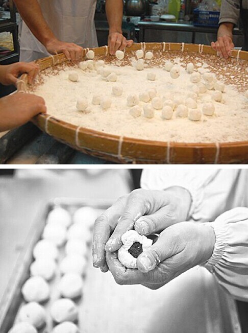 湯圓的做法和包餃子的過程類似:先將糯米粉加水和成團,然后放置幾小時“醒”透,包湯圓的時候就掐料(一般是花生、芝麻)取一小團,捏成圓片,然后把餡料放進去,更后揉成圓球。