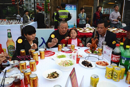 在這兒有6道冷盤、12道運(yùn)河名菜組成的運(yùn)河美食嘉年華典藏菜肴。設(shè)席30桌一字?jǐn)[開100米,憑票入席,300名幸運(yùn)的中外游客與杭城市民一邊在品味豐盛的運(yùn)河名菜。