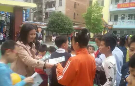 項目負責人解冰為學生發(fā)放兒童食品安全手冊