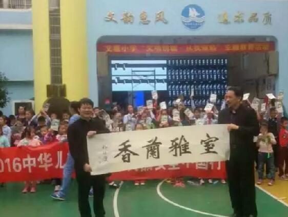 《新魏書法》、《漢字發(fā)明書寫經(jīng)緯十字定位法》的創(chuàng)始人祁繼慶老師為兒童食品安全題寫的“厚德載物”“室雅蘭新”“上善若水”三副新魏體書法作品由兒童食品安全負責人解冰捐贈給了文惠小學和柳州金沙投資管理有限公司。
