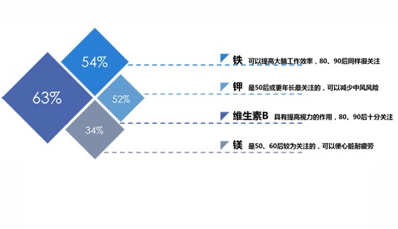 調(diào)查結(jié)果顯示,消費者除關注蛋白質(zhì)和鈣兩項營養(yǎng)指標外,對維生素B、鐵和鉀元素的關注度也較高,希望可以標注在包裝上。年輕人更多地將液態(tài)奶作為早餐飲品,老年人更多地將液態(tài)奶作為睡前飲品。
