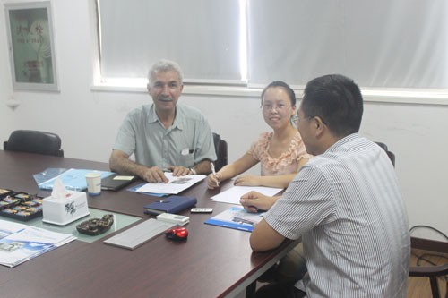 迪拜客戶需要定制數(shù)臺(tái)攪拌罐,來(lái)我公司參觀并與銷售人員進(jìn)行具體細(xì)節(jié)的洽談。