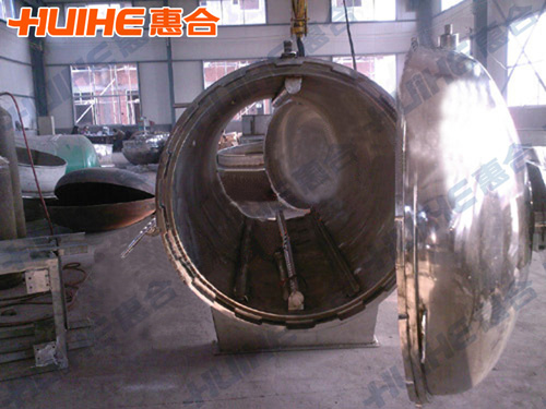 該殺菌鍋筒體長度比一般的單開門殺菌鍋要長,用單開門的方式在生產(chǎn)時取、放產(chǎn)品比較麻煩。